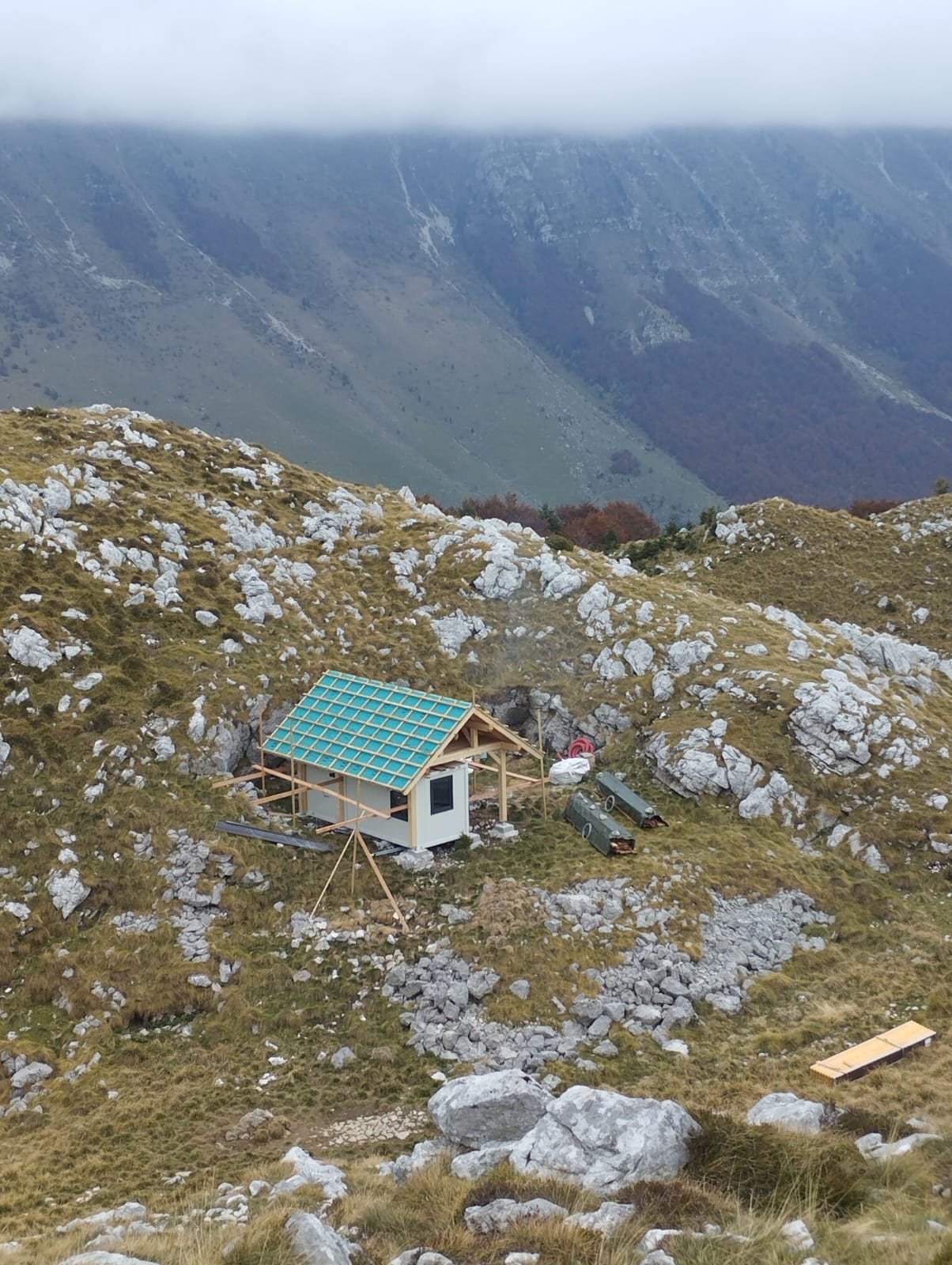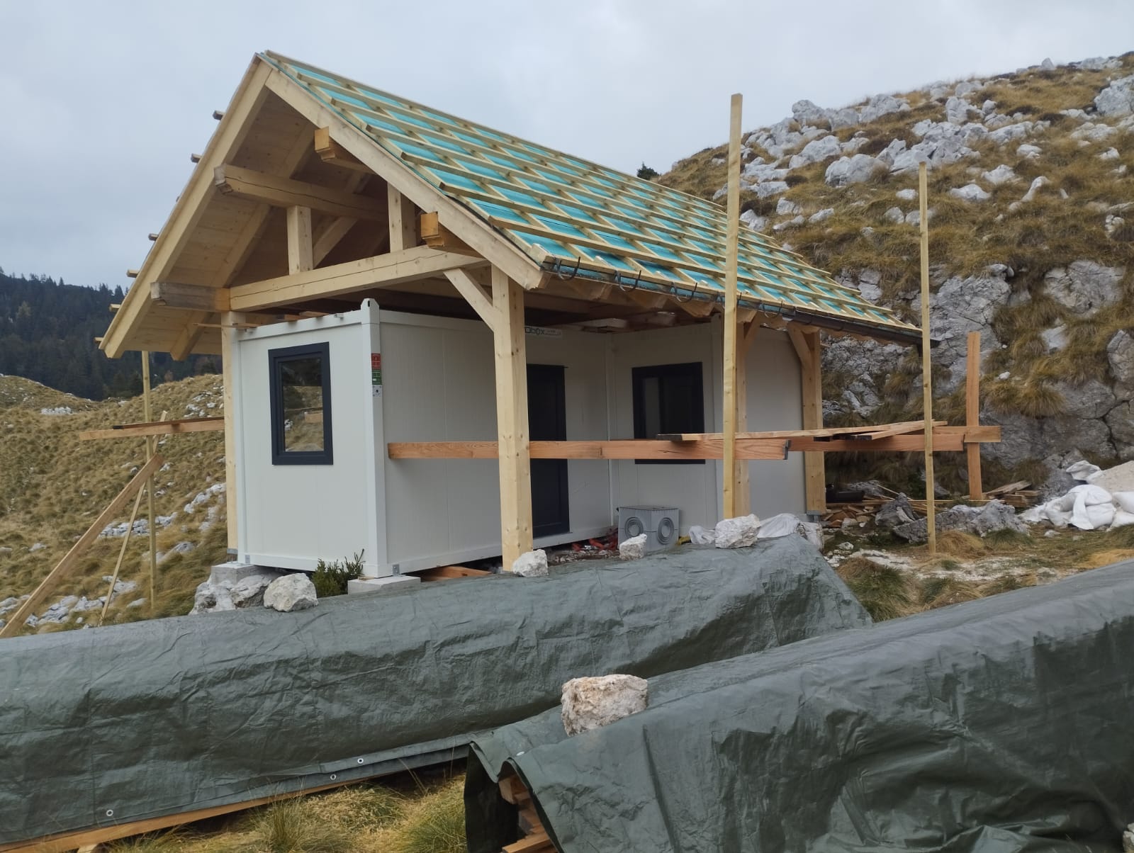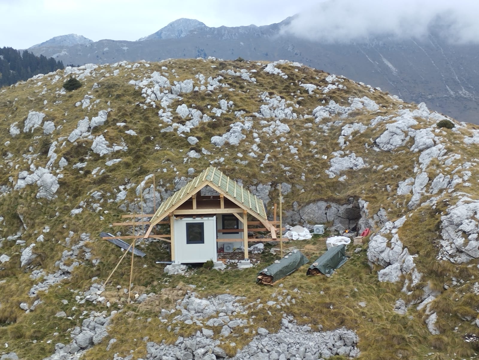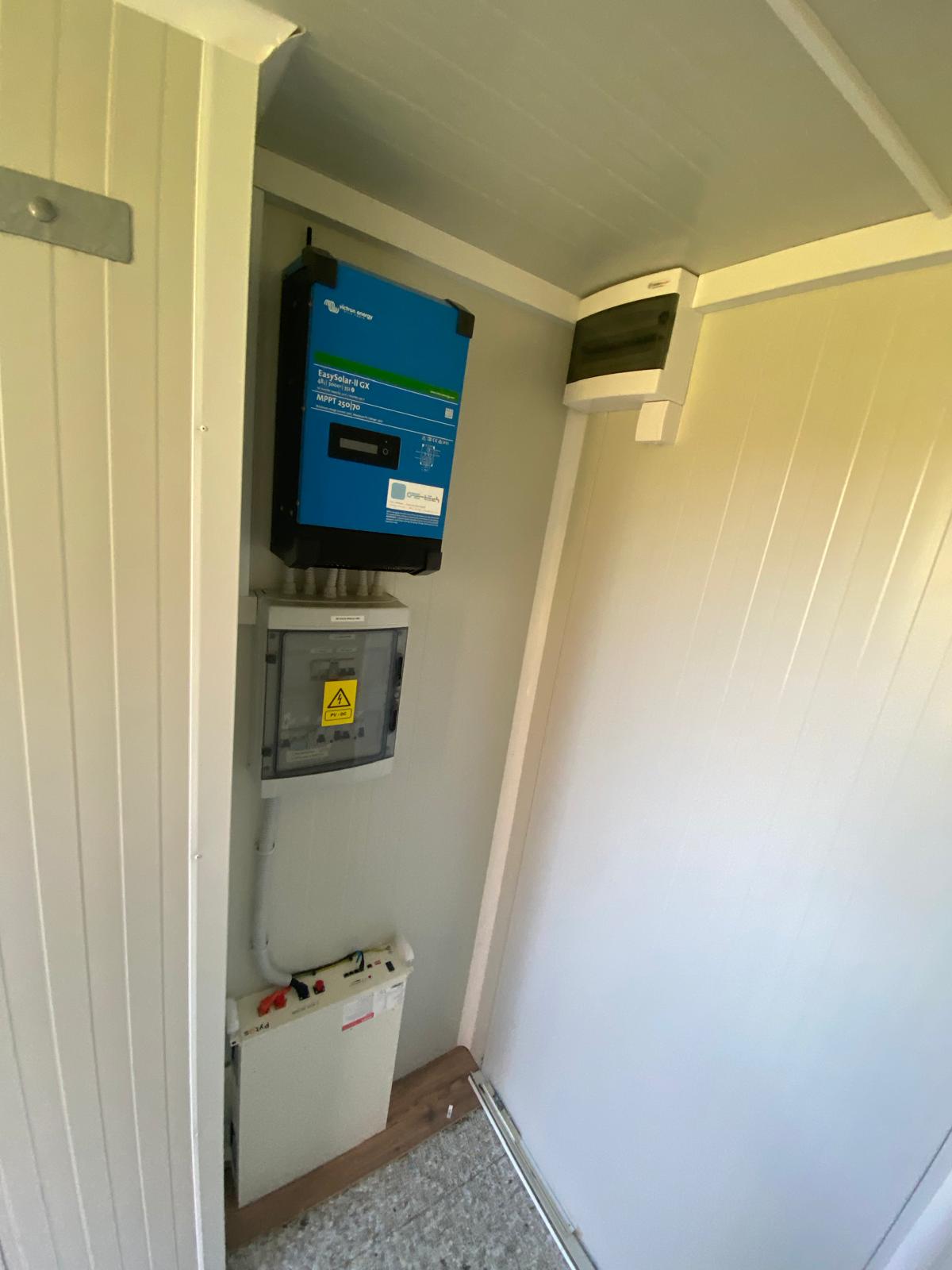 Na hrib je bil s helikopterjem prepeljan montažni objekt, v katerem je nameščena celotna oprema za samooskrbo z električno energijo:-